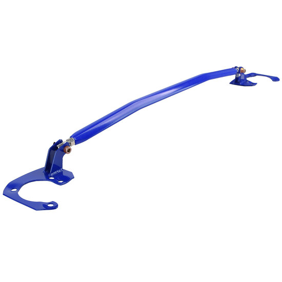 Een blauwe aluminium veerpootbrug, geschikt voor de BMW 3 serie E46 6 cilinder met benzine motor.