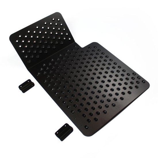 De riser en vloer zijn gemaakt van 3 mm dik aluminium, uitgesneden op een CNC-ponsmachine.