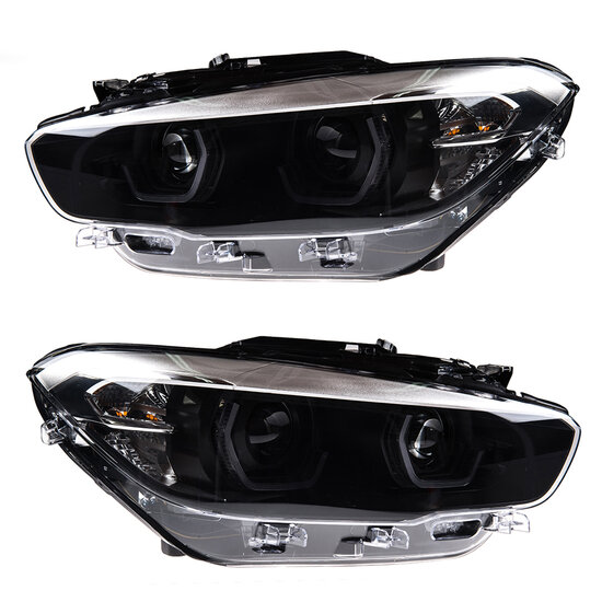Een set angel eyes koplampen, geschikt voor de BMW 1 serie F20 LCI en F21 LCI. Let op:– de koplamp is niet geschikt voor de F20 en F21 pre-facelift (pre-LCI).– niet geschikt voor modellen met LED koplampen.