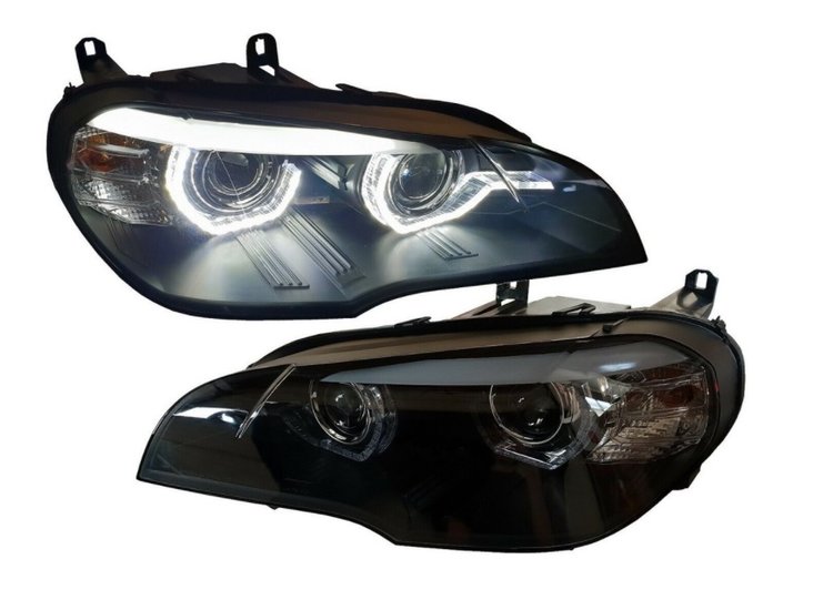 Een set koplampen, geschikt voor de BMW X5 E70 (model 2007 – 2010) met xenon en zonder bochtverlichting.