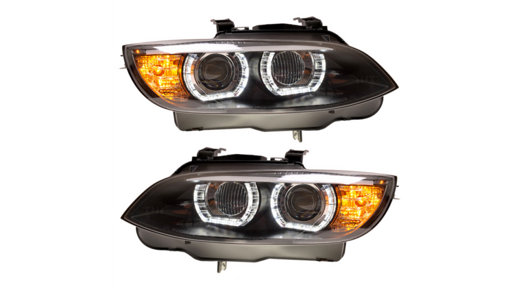 Een set xenon angel eyes DTM style koplampen, geschikt voor de BMW 3 serie E92 coupe en E93 cabrio.