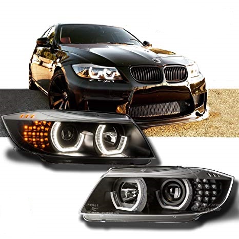 Een set angel eyes LED koplampen, geschikt voor de BMW 3 serie E90 sedan en E91 touring (model 2005 – 2011).