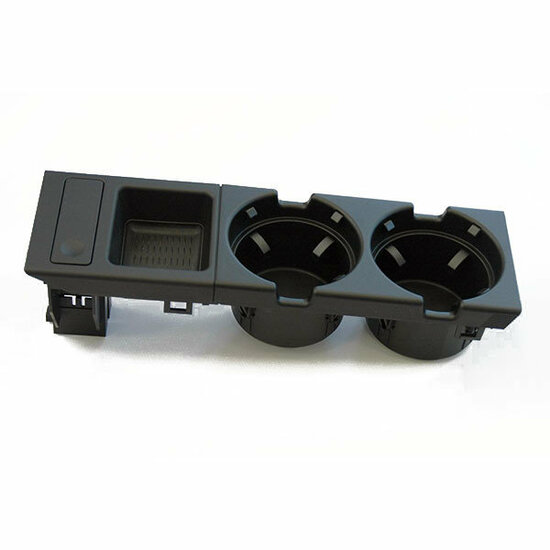Een BMW bekerhouder in combinatie met muntenhouder, geschikt voor de BMW 3 serie E46.