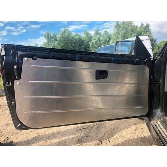 Een set lichte deurpanelen voor de BMW E36 Coupe(bestuurders en passagierskant). Ze zijn gemaakt van aluminium met een dikte van 1 mm, en wegen slechts 1,2 kg. Aan één zijde gepoedercoat. Installatie naar eigen inzicht, maar naar onze mening zullen klinknagels het beste werken.