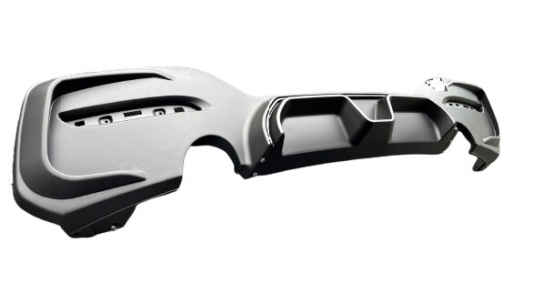 De diffusor heeft één uitlaat uitsparing links en één uitlaat uitsparing rechts (M135i en M140i look).