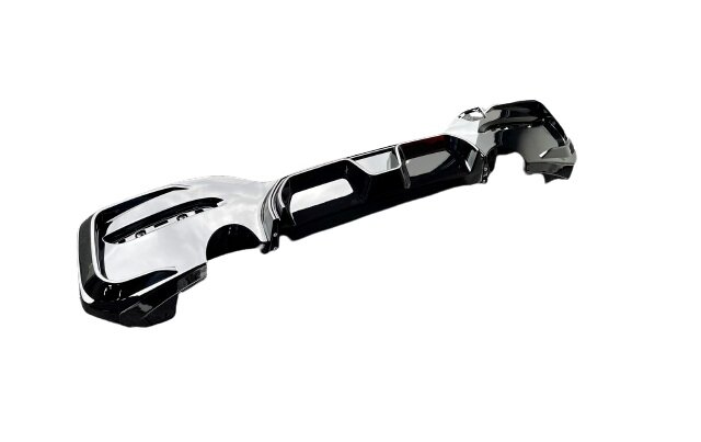 Een glanzend zwarte CS diffuser, geschikt voor de BMW 1 serie F20 LCI en F21 LCI met M pakket achterbumper. De diffuser heeft een uitlaat uitsparing links en een uitlaat uitsparing rechts (M135i en M140i look).