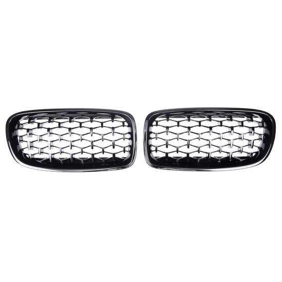 Een set glanzend zwarte diamond grillen, geschikt voor de BMW 3 serie F30 en F31.