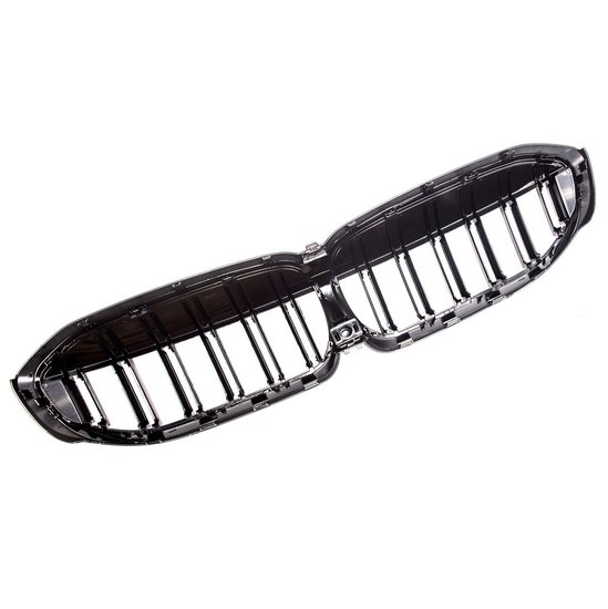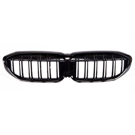 Een set dubbelspijls glanzend zwarte grillen, geschikt voor de BMW 3 serie G20 sedan en G21 touring (model 2019 – 2022).