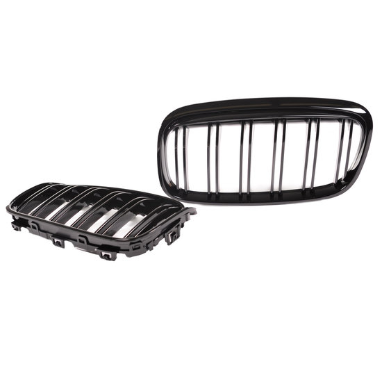 Dubbelspijls grillen hoogglans zwart passend voor BMW 2 serie F45 model 2015 – 2018