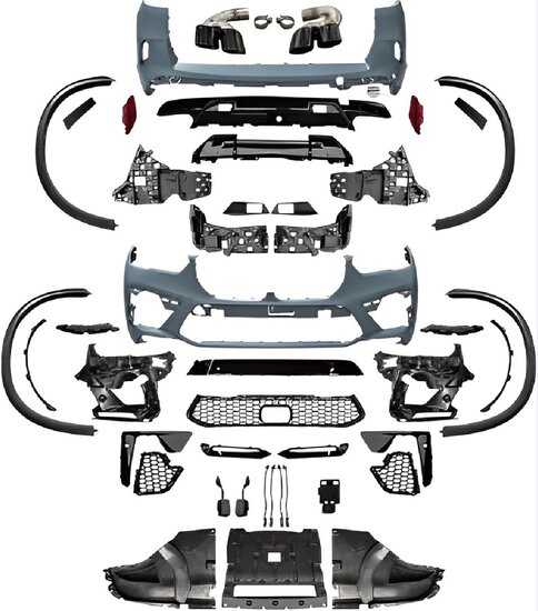 Een EVO look pakket, geschikt voor de BMW X5 G05.Model 2018 – 2022. De set bestaat uit: – Voorbumper – Achterbumper– Wielkastlijsten– Uitlaatsierstukken