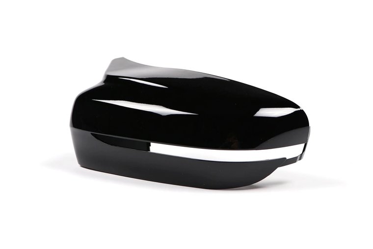 Een set glanzend zwarte EVO look spiegelkappen, geschikt voor de volgende modellen;