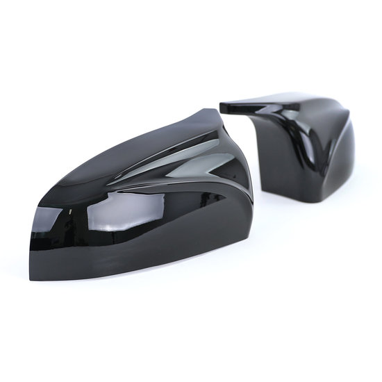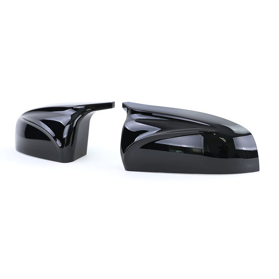Een set glanzend zwarte spiegelkappen, geschikt voor de BMW X5 E70 en X6 E71.