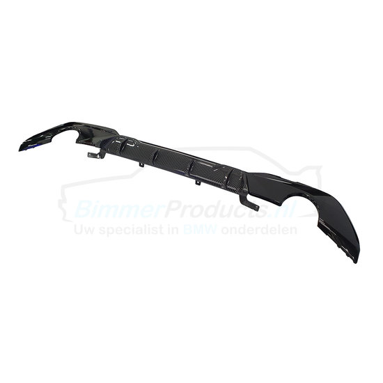 Een competition look diffuser, geschikt voor de BMW 3 serie G20 en G21 (model 2019 – 2022). De diffuser is in carbon look. Let op:– niet geschikt voor de M340i.– niet geschikt voor modellen met trekhaak.