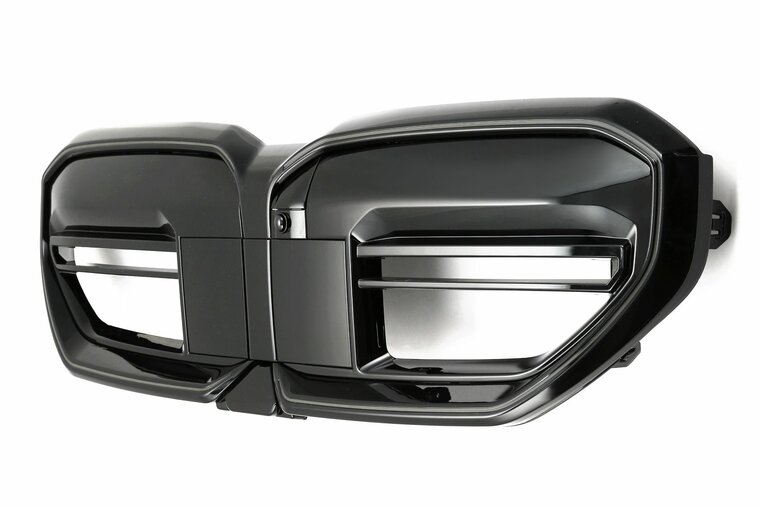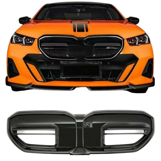 Een glanzend zwarte grill met LED verlichting, geschikt voor de BMW 5 serie G60 en G61. EVO look.