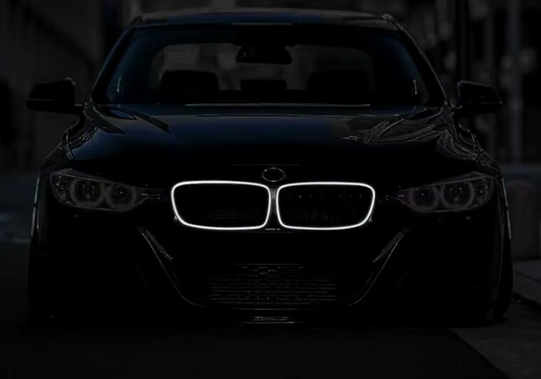 Een set glanzend zwarte grillen met LED verlichting, passend voor BMW 3 serie F30 en F31.