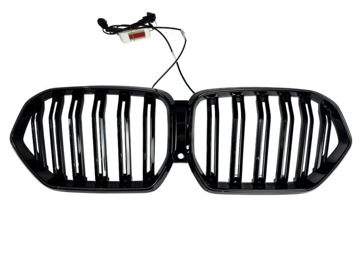 Glanzend zwarte grill, geschikt voor de BMW X6 G06 LCI. Met LED verlichting. Let op:– alleen geschikt voor het LCI model vanaf 2023.