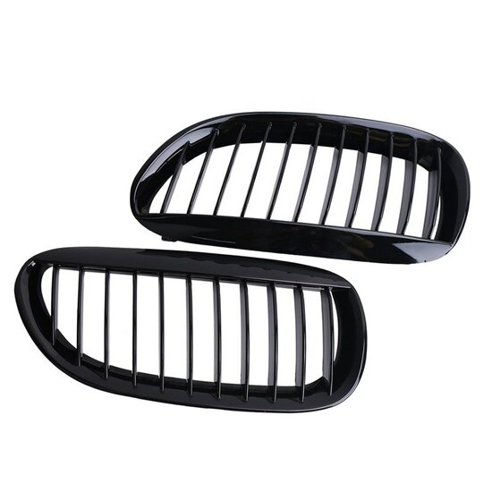 Een set glanzend zwarte grillen, geschikt voor de BMW 6 serie E63 en E64.