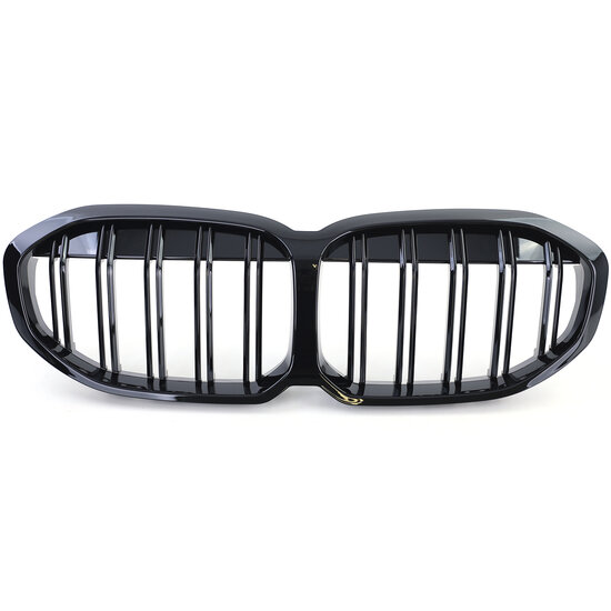 Een set dubbelspijls grillen, geschikt voor de BMW 1 serie F40. De grillen zijn hoogglans zwart.