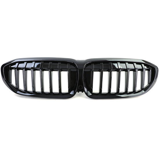 Een set glanzend zwarte grillen, geschikt voor de BMW 3 serie G20 sedan en G21 touring (model 2019 – 2022).