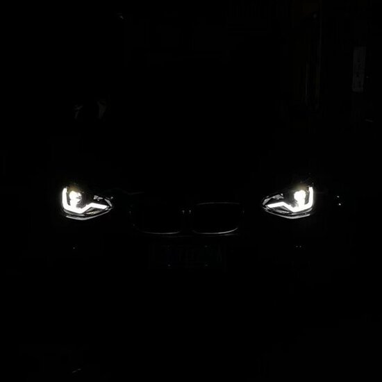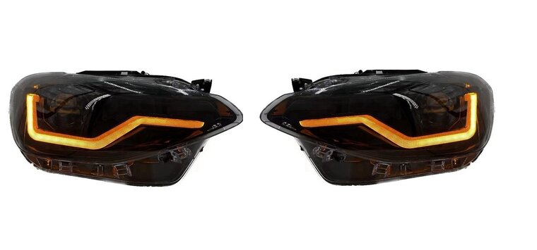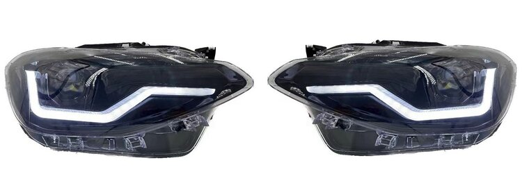 Een set full LED koplampen, geschikt voor de BMW 1 serie F20 en F21 (model 2012 – 2015).