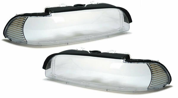 Een set koplampglazen, geschikt voor de BMW 5 serie E39 facelift (model 2000 – 2003), met wit knipperlicht. Let op:– vervangen is niet eenvoudig en vereist handigheid / professionele kennis.