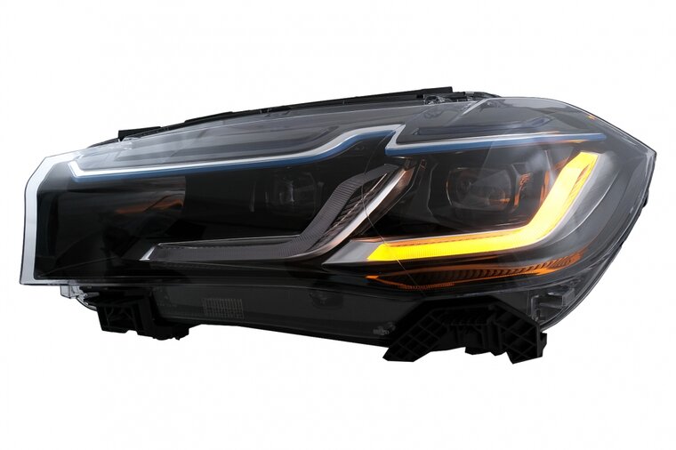 Een set laser look koplampen in de G05 style, passend voor BMW X5 F15 (model 2013 – 2018).