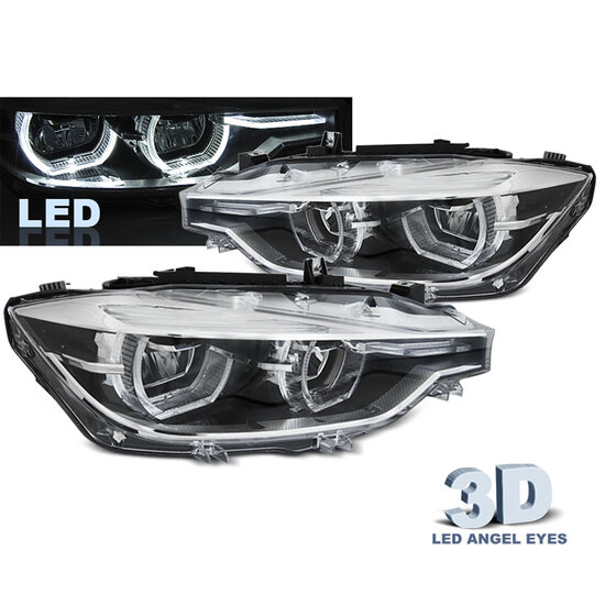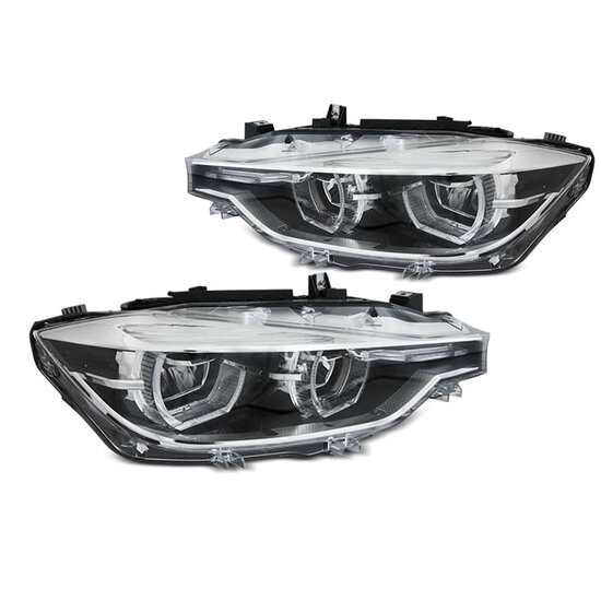 Een set LCI style LED koplampen, geschikt voor de BMW 3 serie F30 en F31 (model 2012 – 2015).