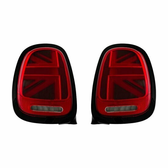 Een set LED achterlichten, geschikt voor de Mini Cooper F55, F56 en F57 (model 2013 – 2024). De knipperlichten zijn dynamisch uitgevoerd. Union Jack style.