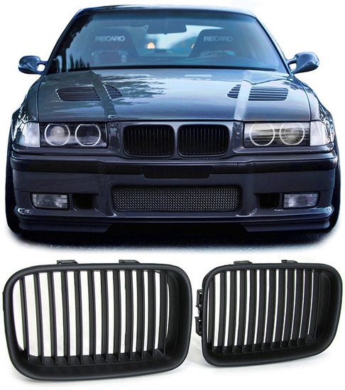 Een set mat zwarte grillen, geschikt voor de BMW 3 serie E36, model 1991 – 09/1996 (pre-facelift).
