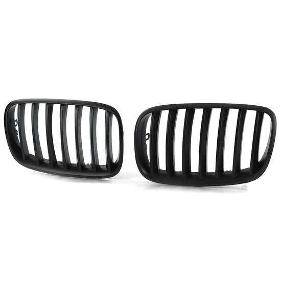 Een set mat zwarte grillen, geschikt voor de BMW X5 E70 en X6 E71.