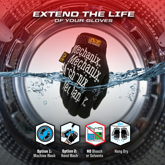 De Mechanix Original handschoen combineert flexibiliteit en bescherming in gelijke mate. De combinatie van synthetisch leer in de handpalm en een ademend materiaal aan de achterkant van de hand maken de Mechanix Original handschoen geschikt voor een verscheidenheid aan verschillende klussen.