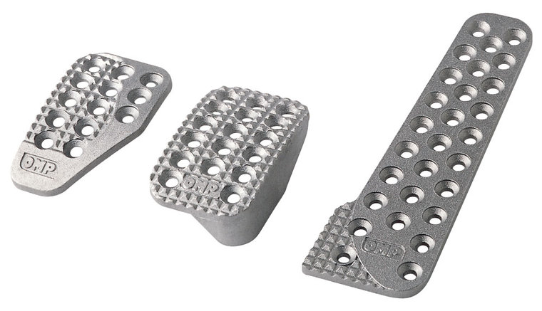 Een set OMP pedalen, bestaande uit: GaspedaalRempedaalKoppelingspedaal Afmetingen:  Rempedaal: 60×100 mmGaspedaal: 60×210 mm