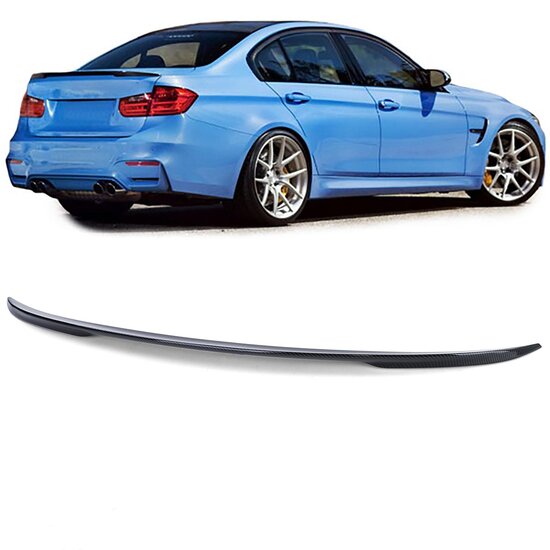 Een performance look achterspoiler, geschikt voor de BMW 3 serie F30 sedan. De spoiler wordt carbon look geleverd.