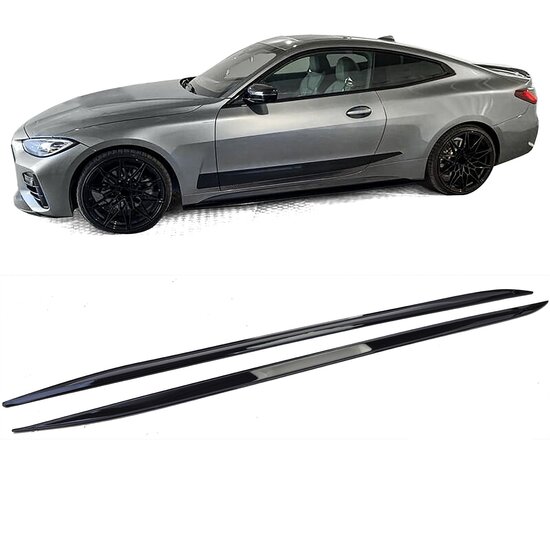 Een set glanzend zwarte sideskirt aanzets, geschikt voor de BMW 4 serie G22 en G23.Alleen geschikt voor modellen met M pakket sideskirts.