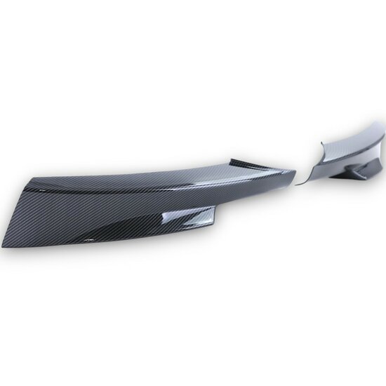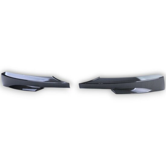 Een set carbon look splitters, geschikt voor de BMW 3 serie E90 en E91 (model 2005 – 2008) met M pakket voorbumper.