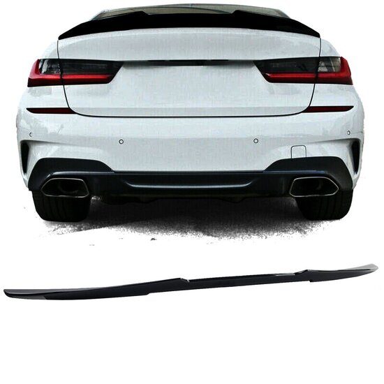 Een glanzend zwarte PSM style spoiler, geschikt voor de BMW 3 serie G20.