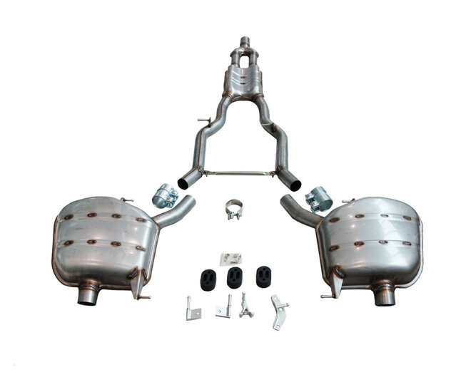 Een sport uitlaatsysteem, geschikt voor de BMW 5 serie F10 535i. Inclusief montagemateriaal.
