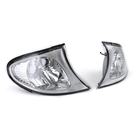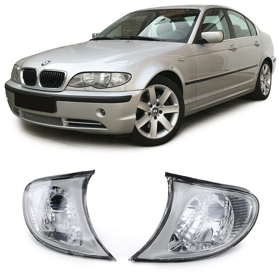 Een set witte knipperlichten, geschikt voor de BMW 3 serie E46 sedan en touring (model 2001-2005).