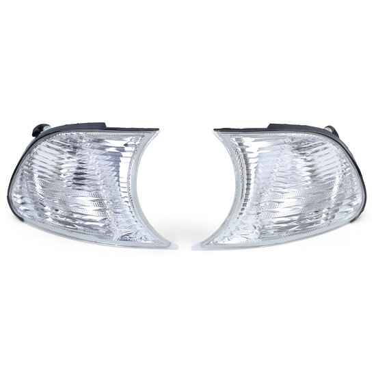 Een set witte knipperlichten, geschikt voor de BMW 3 serie E46 coupe en cabrio (model 2001-2003).