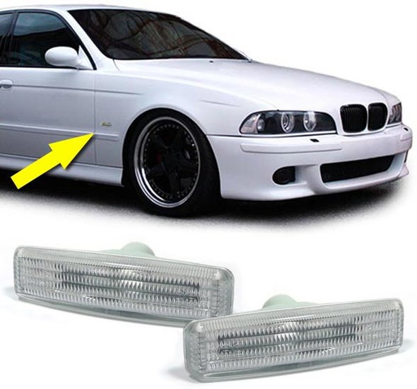 Een set witte zijknipperlichten, geschikt voor de BMW 5 serie E39 (model 1995 – 2003).